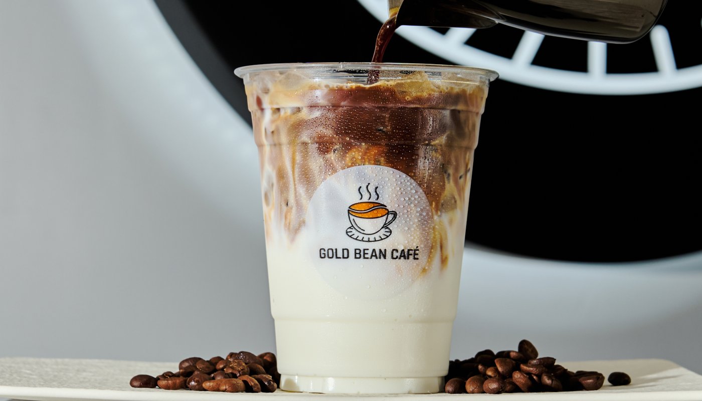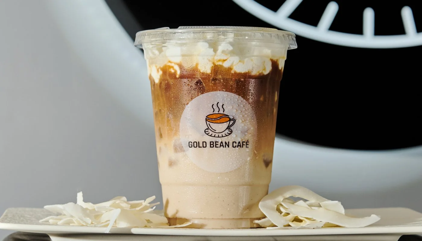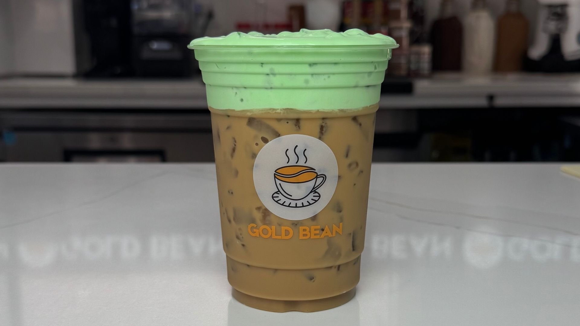 Iced coffee topped with creamy pandan sweetness.