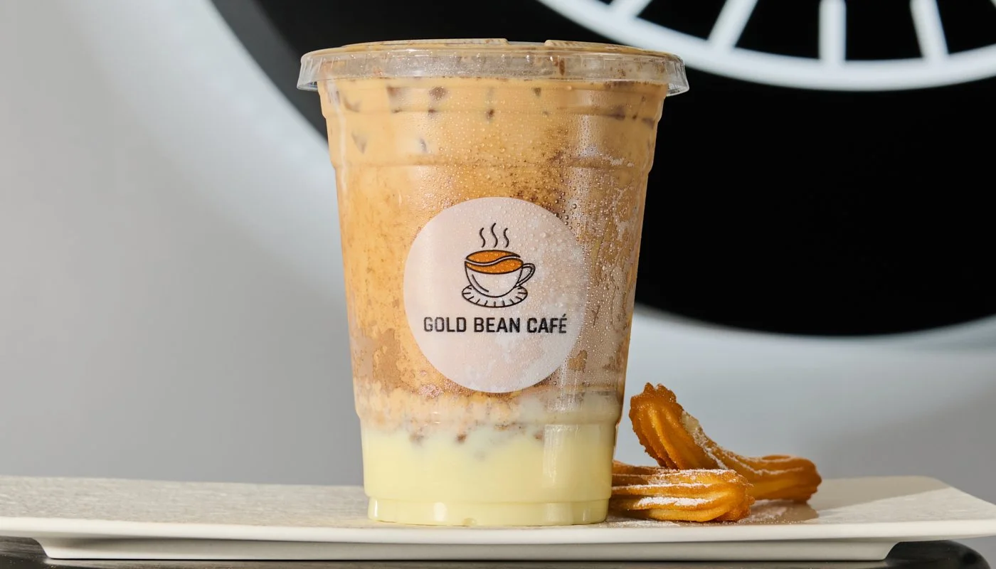 Iced latte with sweet churro notes.