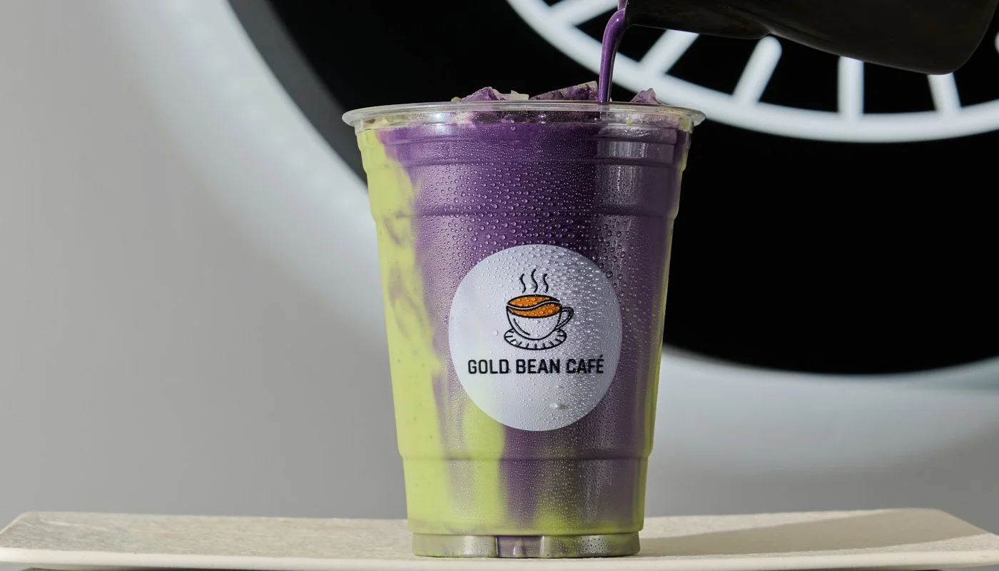 Matcha topped with creamy ube foam.