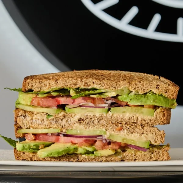 Fresh plant-based ingredients, designed to be both nourishing and delicious. Hummus paired with ripe avocado, fresh cucumber, lettuce, tomato & onions.