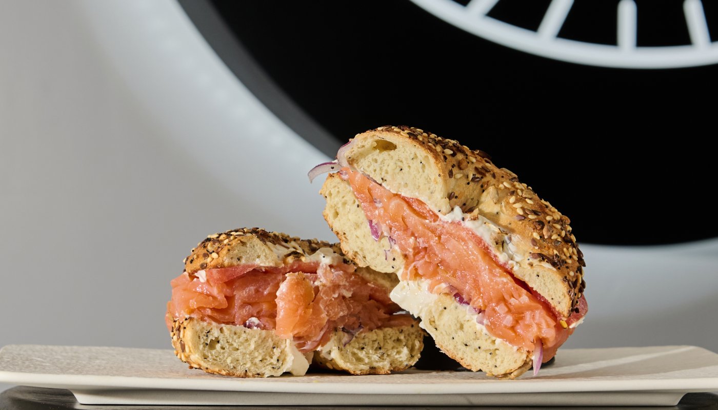 A sandwich that combines the rich flavor of lox (smoked salmon) with the chewy texture of a freshly toasted bagel, along with creamy spreads and fresh toppings.