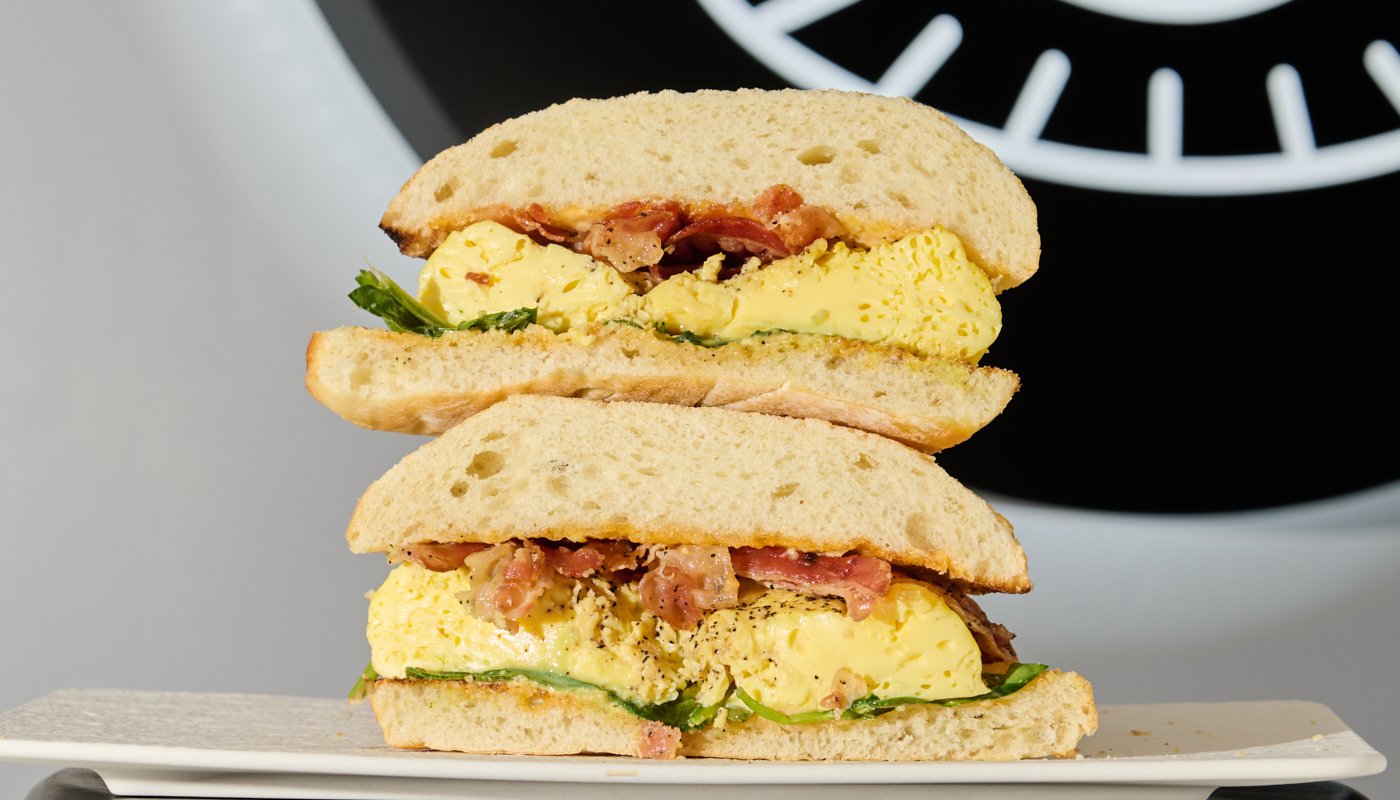 A savory ciabatta packed with crispy bacon, eggs, spinach, and house sauce.