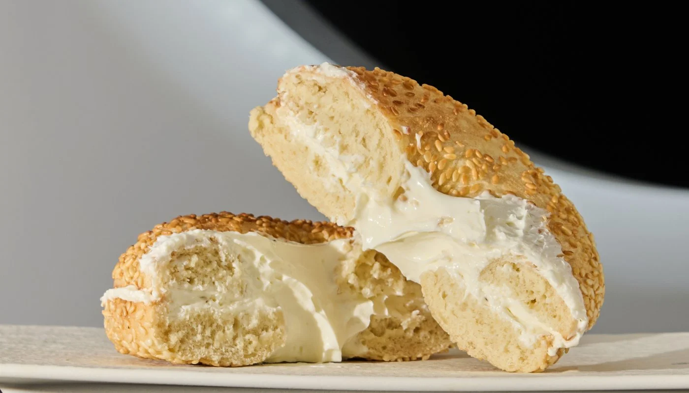 A delicious breakfast or snack option that combines the chewy texture of a freshly toasted bagel with the creamy, flavorful richness of your favorite spread.